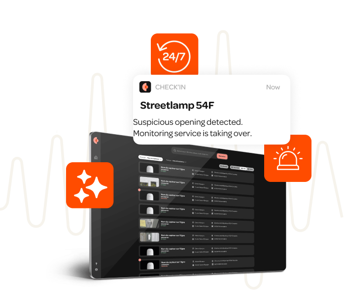 Check’In monitors your lamppost network 24/7, alerting you in real time to any unauthorized opening